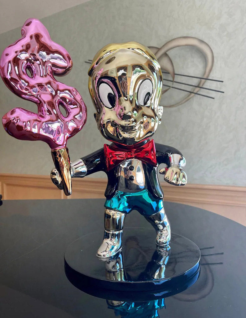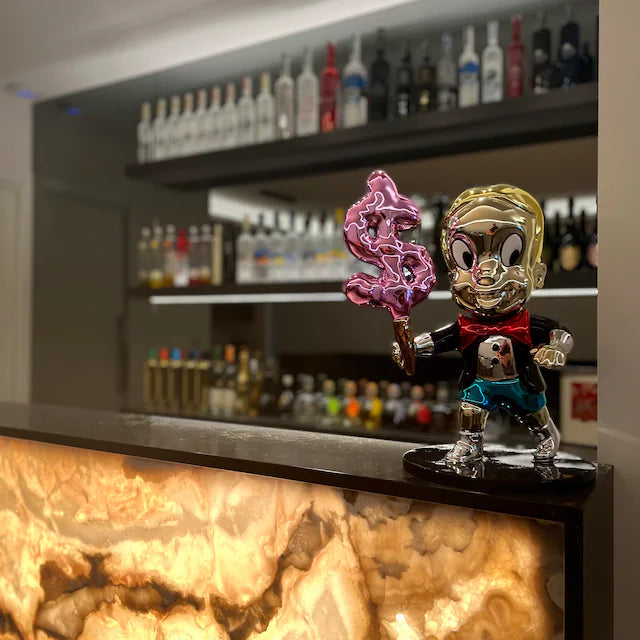 Richie™ capture l'esprit d'extravagance et de charme intemporel, alliant culture pop et art raffiné. Sa finition chromée et son électroplaquage vibrant font de cette pièce en édition limitée un symbole de luxe ludique, conçu pour les collectionneurs qui désirent une œuvre d'art qui se démarque et suscite des conversations.