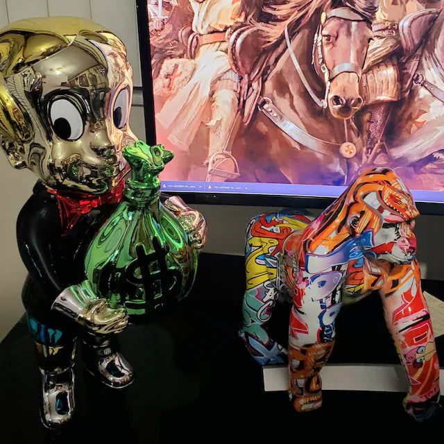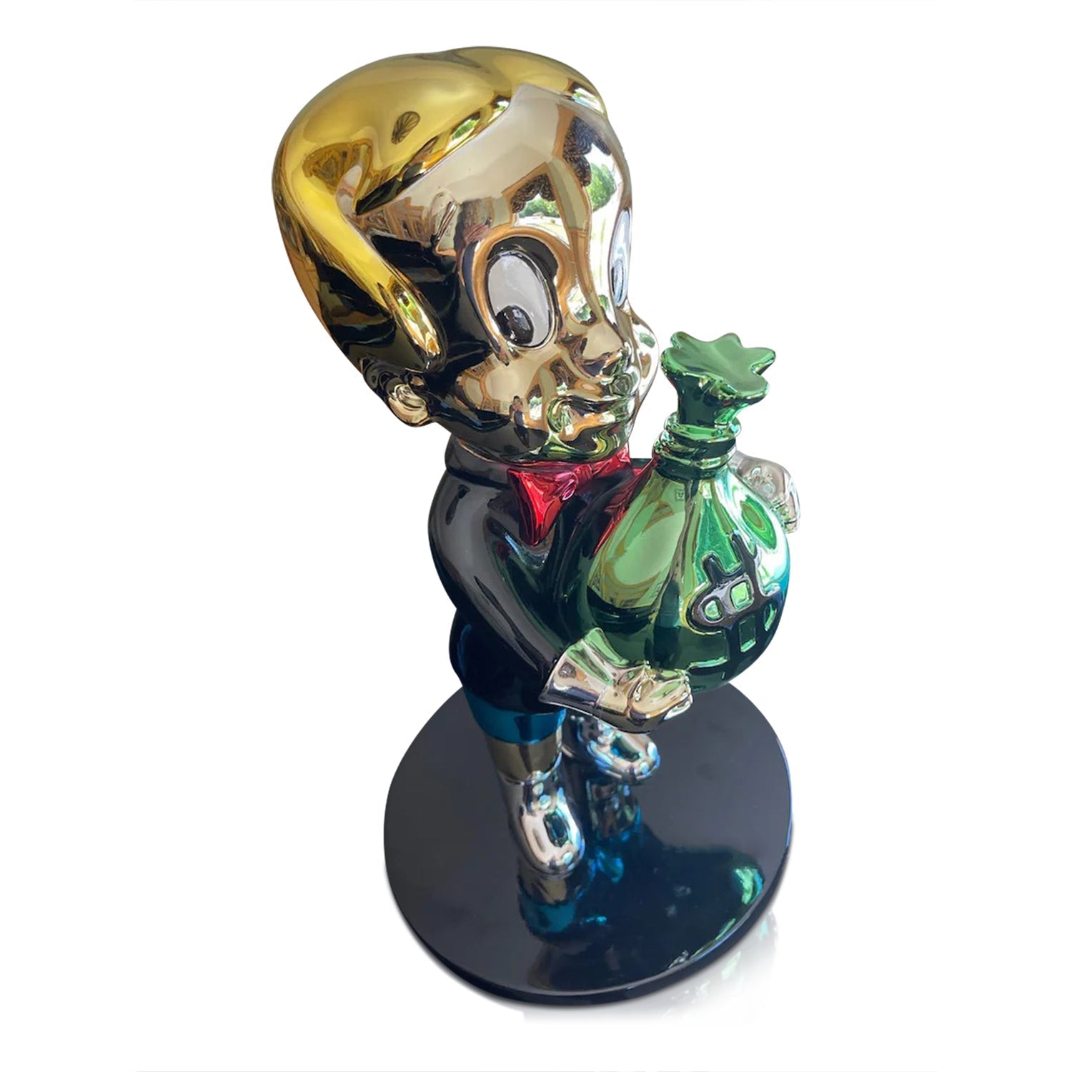 Richie Rich $ Bag™ fusionne la nostalgie de la culture pop avec le luxe moderne. Son chrome poli miroir et son électroplacage vibrant évoquent la richesse et l'aspiration. En tant que partie d'une collection en édition limitée, cette sculpture est une déclaration d'opulence ludique, parfaite pour les collectionneurs qui apprécient l'art rare et exclusif.